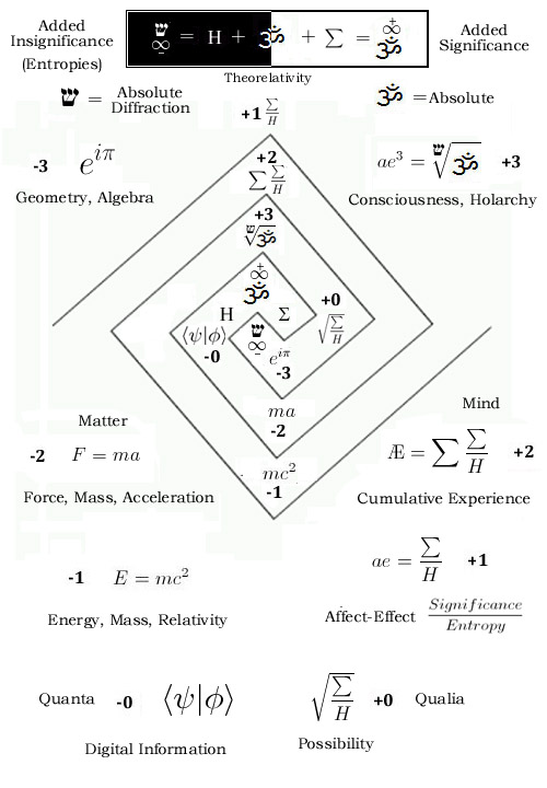 Finally, the Quantum-Digital (-0) level, picking up where Einstein left off, is giving us a taste of an information-theoretic universe. The heroes of Quantum Theory include Planck, Bohr, Heisenberg, Feynman, etc as well as Turing, Shannon, Bateson, and many others for introducing a probabilistic Wonderland in which reality can only be calculated, but not understood. Each of these levels deserves a dissertation, and then another set of dissertations about how they all relate. Hopefully that is enough to give anyone who has stuck with it this far a taste of that this is all about.