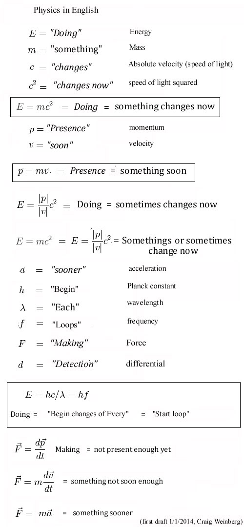 Energy (E) becomes w² which is “was and will be” (w = was or will be)