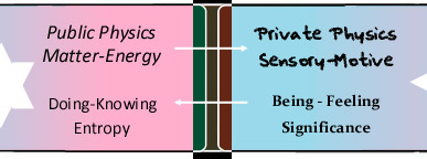 Ideally, the continuum would be projected as a sphere, as the far Eastern and far Western edges meet (here named the Profound Meridian), as would the top and bottom (Tropic of Mereology). The center line which splits subjective from objective qualities is named the Meridian of Perception and should be though of as being like a figure eight twist (like a Klein Bottle or Mobius Strip, aka non-orientable or involuted surface).