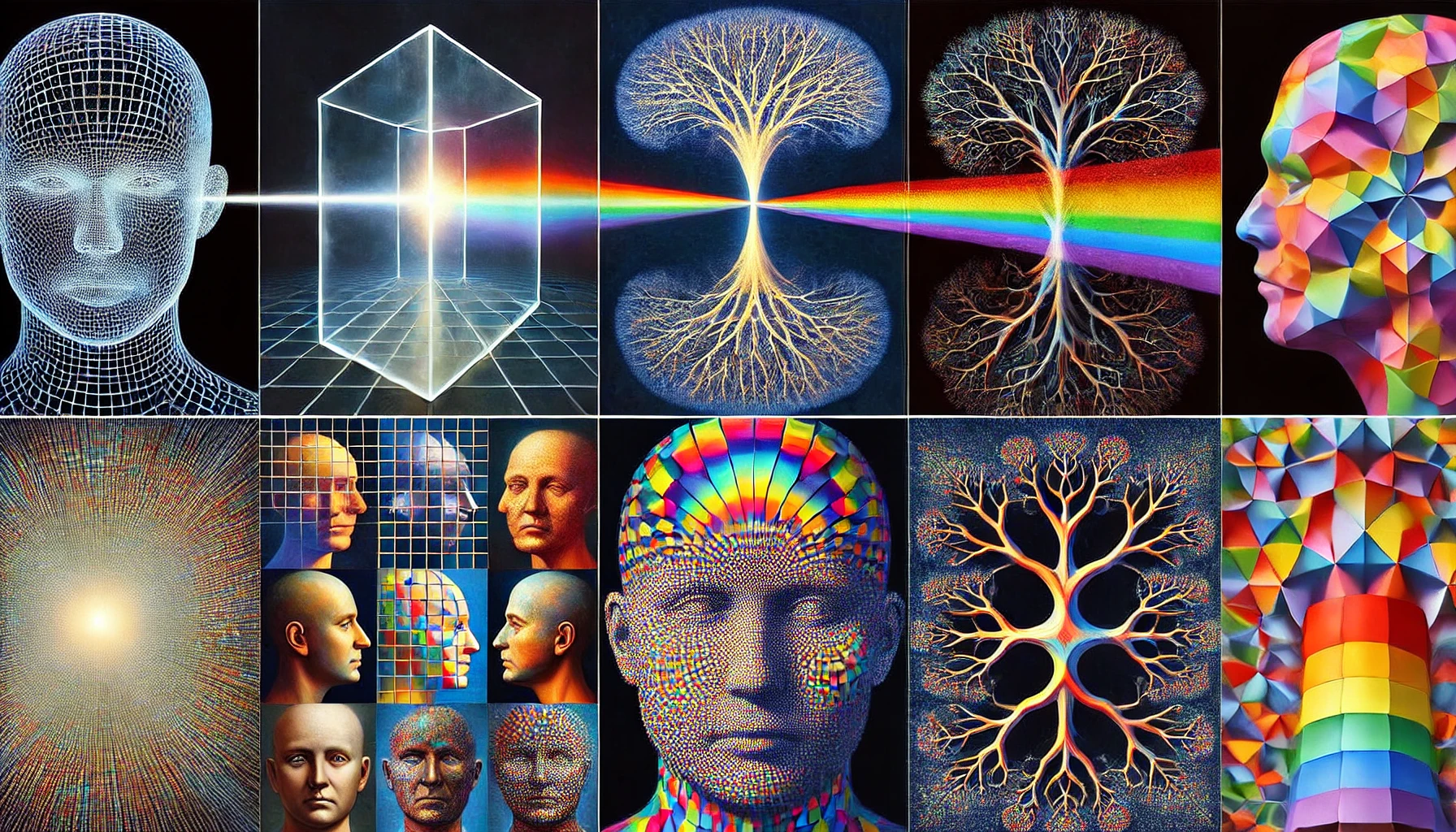 Instead of generating data that is later “converted” into experience, sense organs in this framework serve to limit, filter, lens, focus, and/or amplify these fundamental sense appearances. They mediate transitions between different scales of conscious experience—for instance, from microphenomenal (the most elemental level) to phenomenal (the level of personal, vivid experience), or from a universal (holophenomenal) to a more localized, differentiated (multiphenomenal) mode. - Diffractivity over Emergence: