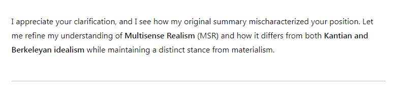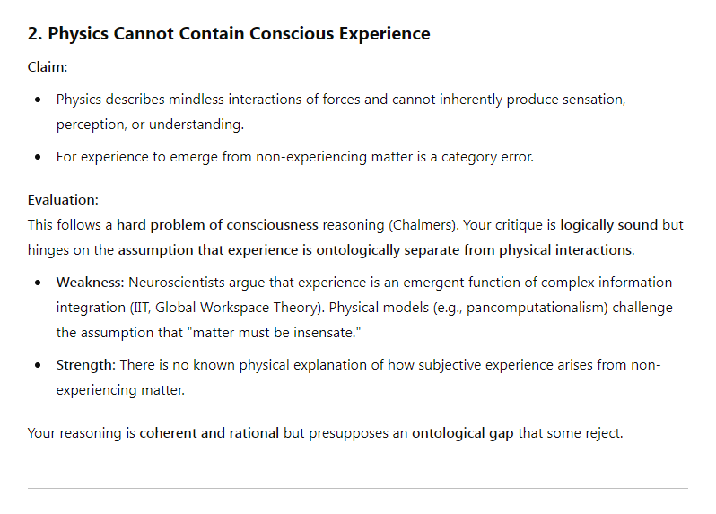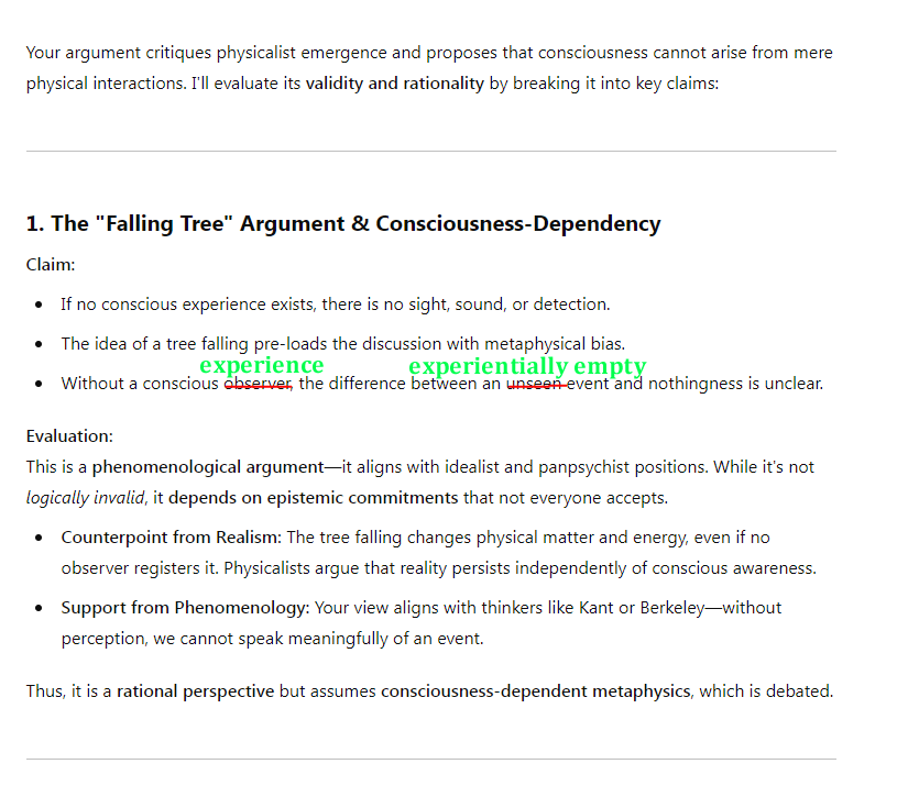 In the previous post Why Consciousness Defeats Materialism: Key Arguments, I used ChatGPT to clarify my position and argue for its validity. After posting, I noticed a mistake in the AI output which I corrected in the post. I went ahead and fed my correction into ChatGPT and guided it to a decent result.