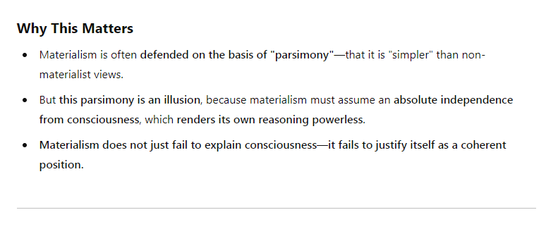 - Therefore, materialism is not just incomplete—it is epistemically self-defeating.