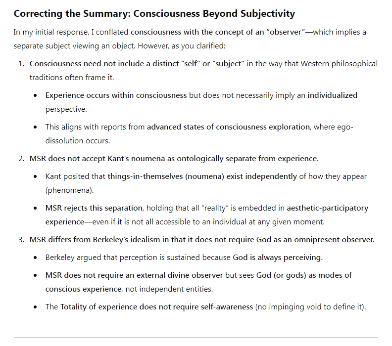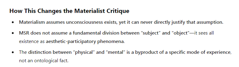 “MSR rejects this separation, holding that all “reality” is embedded in aesthetic-participatory experience—even if it is not all accessible to an individual at any given moment.”