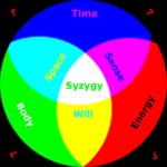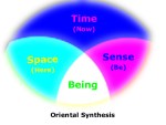 What we are is neither space, nor motion, nor time, nor information, but informed, moving, waving firmament. Not the wave but that infinitely anchored silent stillness of everythingness itself which is being perturbed in a wavelike manner and making shows within shows which we call time and experience, or, if you like, energy. Energy is a concept of the experience of one show being indirectly experienced in the context of another show. It’s anomalous but sensible. Like the end of Wizard of Oz where the three super-signifying (floridly fictional) characters are re-contextualized as ordinary (naturalistic fictional) farmhand characters in the desaturated aftermath of the dream