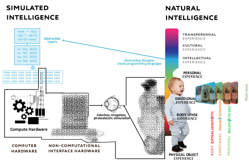 As we struggle to understand consciousness scientifically, we should take care to avoid errors resulting from anthropomorphic projection and assumptions of bottom-up emergence. My presentation focuses on clarifying the differences between physical form, logical information, and sense experience. I propose that common terms such as ‘signaling’ and ‘sense data’ are deceiving approximations which rely on pan-semiotic, anthropomorphic biases that lead us away from understanding and toward an echo-chamber of fallacies and false presumptions. What is the difference between a physical chain reaction and a signal? What is the difference between sense experience and sense-making? What is the role of tangibility in differentiating between objects, concepts, and percepts, and what is the origin of tangibility? In light of the accelerated pace of AI development and the heightened intensity of debate about its implications, it is important to go back and re-examine the foundations of computation from a philosophical perspective. By doing this, at least some of us will see that science and technology have not solved the hard problem of consciousness, only miniaturized it to the point that it can be easily overlooked. In my view, recognizing this mistake and the gravity of its consequences is critical to any deep understanding of consciousness or simulated intelligence systems. Without such a deep understanding, I think that we will tend to assume human or superhuman sentience for any unfamiliar results, and to ultimately cede authority to systems which only reflect our own desires for certainty and leadership. C13