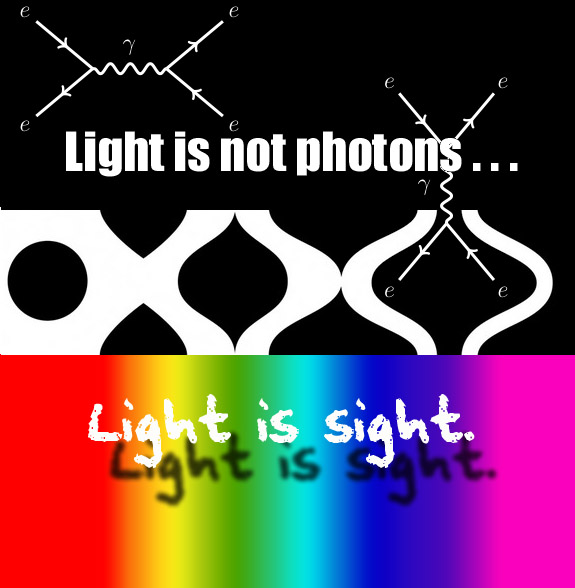 Philosophers would call it qualia, neuroscientists might call it ‘sense data’, phenomenal visual experience, or ‘static achromatic form perception’. In short, seeing light is irreducibly experiential. All light is only that which is seen, and photons do not necessarily have any visible qualities.